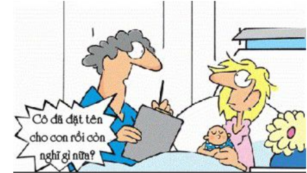 - Thưa bác sĩ... tôi đã tìm được tên cho cháu rồi. Bây giờ tôi đang tìm họ cho nó.