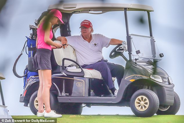 Nữ trợ lý nói chuyện với ông Trump tại sân golf vào ngày 29/3.