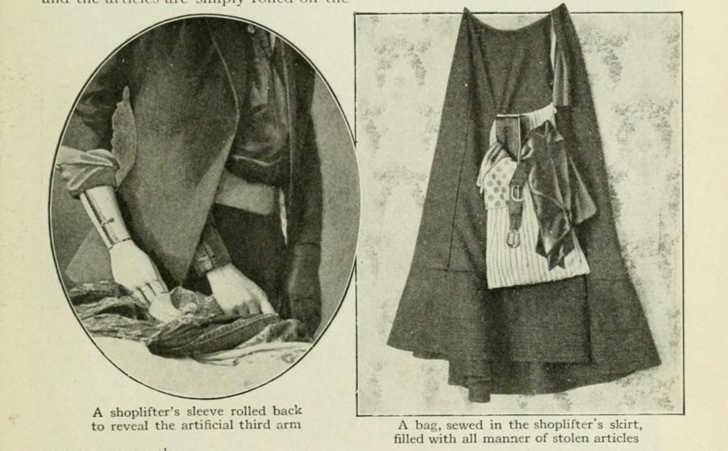 Áo khoác gắn cánh tay giả và túi ẩn may thêm để thuận lợi cho các nữ đạo chích ăn trộm.