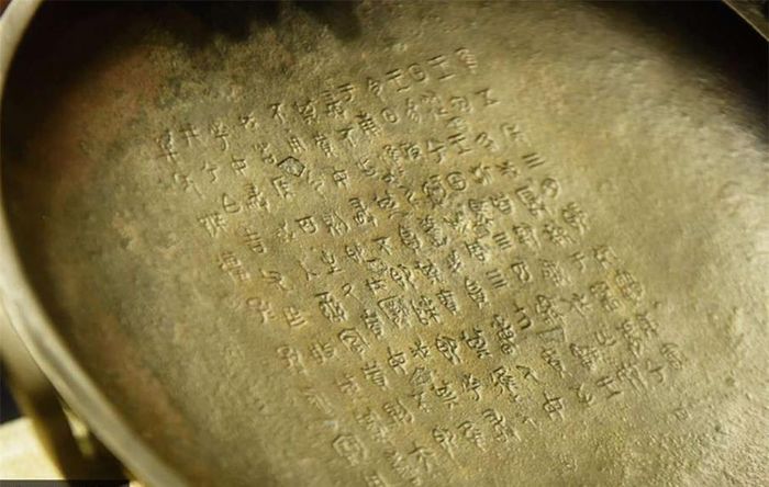 Trên chiếc khay bằng đồng này có khắc 133 chữ với nội dung liên quan đến thời Tây Chu. Ảnh: Chinadaily