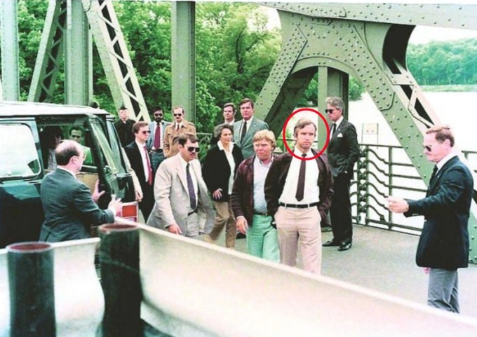 Marian Zacharski (khoanh đỏ) trong cuộc trao đổi tù nhân trên cầu Glienicke ở Berlin, địa điểm nổi tiếng cho các cuộc trao đổi tù nhân trong suốt Chiến tranh Lạnh. Ảnh: DPA