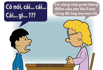 - Cô cũng vừa post bảng điểm của em lên Facebook, cũng đã tag mẹ em rồi.