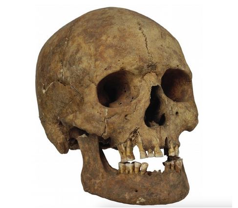 Hộp sọ của một người đàn ông với hàm răng được mài giũa và vết gãy đã lành từ Viking