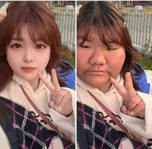 - Anh ngạc nhiên lắm hả? Này nhé, em chụp chân dung xong, bấm vào chỉnh sửa, kéo sang làm đẹp. Anh thấy hiện lên chữ làm mịn không? Em kéo làm mịn, anh thấy chưa? Da em nhăn nheo, giờ mịn màng chưa? Tiếp đến làm trắng này, da em nâu nâu thơm mùi bánh mật, kéo một cái trắng tinh chưa anh! Mịn màng trắng trẻo như da em bé, tiếp đến chỉnh mắt to, mắt sáng long lanh, mi dài, lông mày đen cong vút, mũi cao, cằm Hàn Quốc, môi trái tim tô màu đỏ chót, hay anh thích môi em màu gì? Màu cánh sen nhá, ra màu cánh sen ngay. Anh thấy chưa? Bây giờ em xinh lung linh.