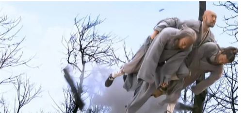 Vô Danh Thần Tăng bị thương mà vẫn có thể khiêng Tiêu Viễn Sơn và Mộ Dung Bác bay đi mất. (Ảnh: Sohu)