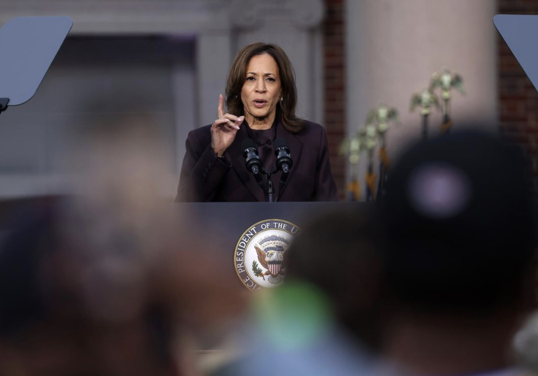 Phó Tổng thống Kamala Harris phát biểu trên sân khấu khi bà thừa nhận thất bại trong cuộc bầu cử, tại Đại học Howard ở Washington, DC tối 6/11. Ảnh Getty