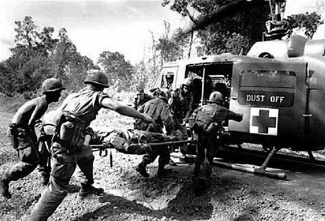 Khi các phi vụ tản thương của Thủy Quân Lục Chiến bắt đầu, trong lúc chiến trận, tôi đã phải nhìn và chú ý, rất nhiều lần, lòng dũng cảm của các phi công trực thăng. Họ bay các chiếc H-34 Choctaw cũ kỹ. Các chiếc trực thăng bay đến từ hướng đông, bay vòng và phía bên ngoài khu vực của chúng tôi, rồi cuối cùng, xuất hiện từ phía tây. Họ bay thấp xuống con sông khi đến gần vị trí chúng tôi, khi ấy họ phải lấy cao độ, rồi họ lại bay thật nhanh khi đến gần chỗ đáp mà chúng tôi đã lựa chọn. Họ điều khiển trực thăng trên đầu bãi đáp, dưới lằn đạn của những khẩu súng lớn và những khẩu súng cá nhân nhắm bắn vào họ. Họ phải giảm ga và đáp thật nhanh, mang các thương binh lên trực thăng thật nhanh, rồi cất cánh, quẹo trái và bay rời khỏi vùng ngay chỗ mà họ đã tới. Tôi cảm thấy thời gian mang các thương binh lên tàu quá ư là lâu, nhưng thật ra, chỉ mất chừng khoảng hai phút. Các phi vụ tản thương kéo dài khoảng ba giờ đồng hồ. Họ đã bị bắn dữ dội trong toàn thời gian ấy.