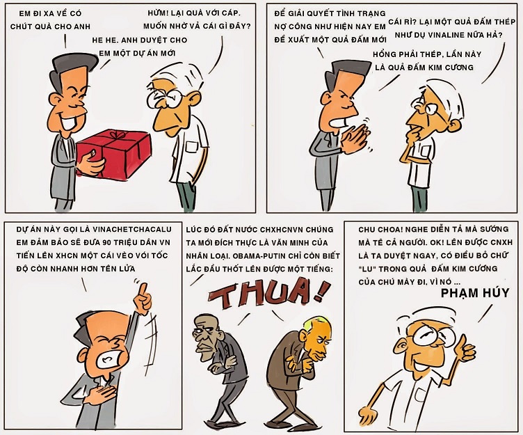 Chuyện quan chức CS sống xa hoa trên sự khốn cùng nhân dân đã có từ thời Lảo Hồ . Mặt trước giản dị để mị dân, mặt sau thì kinh khủng. Cách đây mấy năm, một tờ báo đưa hình bên trong dinh cơ của thằng Nông Đức Mạnh – người khởi xướng “phong trào học tập và làm theo tấm gương đạo đức của lảo Hồ là một khung cảnh xa hoa đến choáng ngợp. Những chiếc ghế bàn chiếc ghế được giác vàng sáng loáng y hệt như ngai vàng của vua chúa. Tiền đâu ra mà họ sử dụng nó xa hoa đến vậy? Câu trả lời là sự nghèo khổ của nhân dân, đất nước tụt hậu là cái giá cho sự sống xa hoa đó.