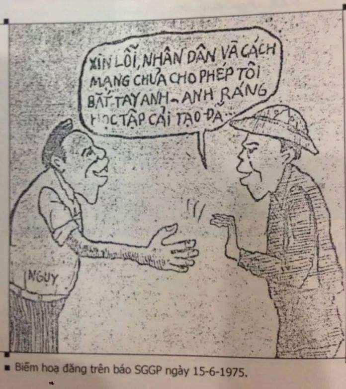 Biếm họa của báo SGGP ngày 15/6/1975.(Tài liệu lịch sử).