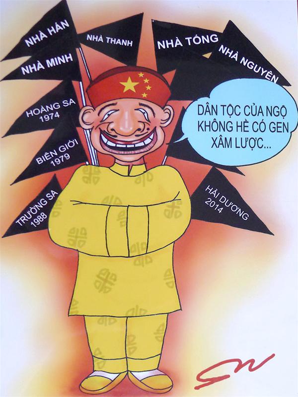Tranh biếm họa bằng nhiều hình thức khác nhau để người xem thấy rõ ràng hành động xâm lược của Trung Quốc ở biển Đông...
