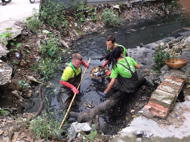 Anh James Joseph Kendall đã quay lại con mương ở phường Yên Hoà để tiếp tục dọn rác, làm sạch nước
