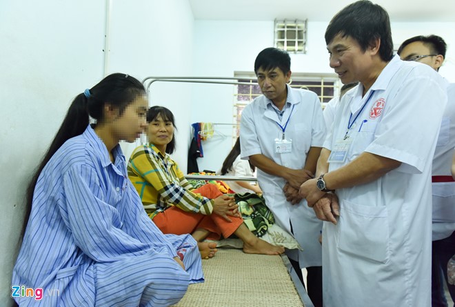 Ngồi bên cạnh là chị Hạnh (mẹ của Hoa). Chị cho biết rất thương con nhưng chỉ biết động viên để Hoa nhanh khỏe để tiếp tục ôn thi vào năm sau, bắt đầu lại cuộc đời.