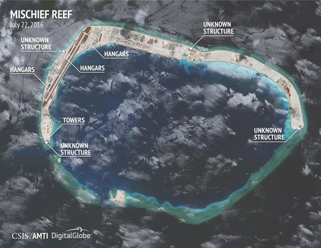 Cận Đá Vành Khăn đã bị Trung Quốc bồi lấp, xây đảo nhân tạo trái phép với đường băng, nhà chứa máy bay và các công trình quân sự ở quần đảo Trường Sa của Việt Nam.