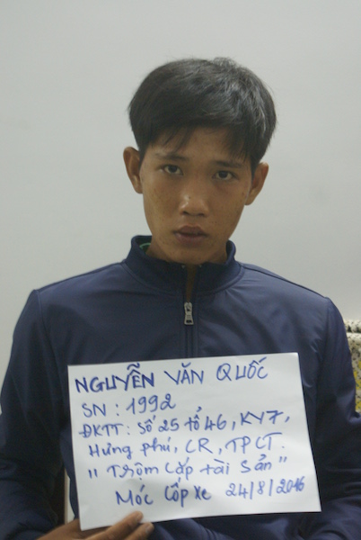 Ngày 25-8, Phòng Cảnh sát hình sự (PC45) Công an TP Cần Thơ cho biết đang tạm giữ hình sự đối tượng Nguyễn Văn Quốc (24 tuổi, ngụ khu vực 7, phường Hưng Phú, quận Cái Răng, TP Cần Thơ) để làm rõ hành vi trộm cắp tài sản.