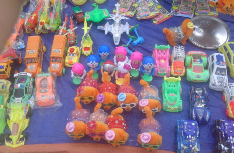 Những món đồ chơi bằng nhựa màu bắt mắt không nhãn mác bán phổ biến tại nhiều vùng quê