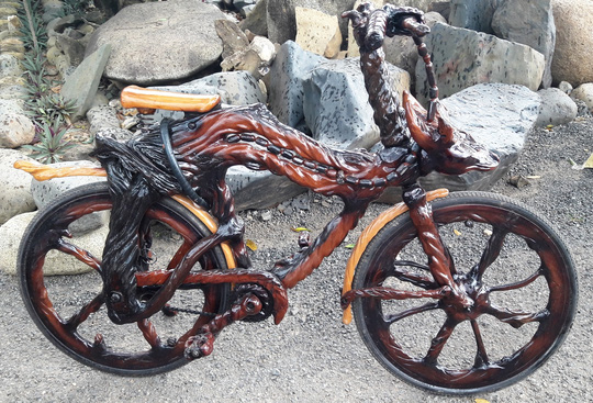 Chiếc xe mô tô bằng gỗ độc nhất vô nhị của ông Lê Quang Sơn tại tỉnh Lâm Đồng đã khiến nhiều người vô cùng sốc. Chiếc xe được thiết kế bằng gỗ vô cùng độc đáo này là tác phẩm của ông và người bạn của mình có thể đạt tốc độ tối đa 175 km/giờ. Không chí sở hữu chiếc xe máy hầm hố này mà ông chủ cơ sở đá gỗ mỹ nghệ còn sở hữu một chiếc xe đạp cũng hoàn toàn bằng gỗ.