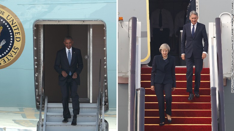 Tổng thống Mỹ trước đó đã đến sân bay Hàng Châu và bước xuống từ Air Force One bằng một cầu thang nhỏ - một nghi thức ngoại giao khác lạ không có thảm đỏ như vốn thấy trong các cuộc đón tiếp nguyên thủ thế giới.