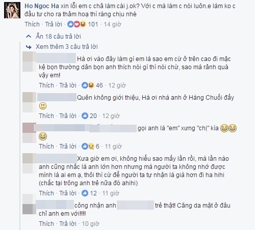 Hôm nay, cậu post một tấm hình của Hà Hồ lên, rồi ngoa ngoắt nhấm nhẳng kiểu người Hà Nội la làng la xóm. "Ối giời ơi cuộc đời lãng phí bấy lâu, sao không biết để phẫu thuật cho nó đẹp nó đổi đời!" - Ý là như vậy, tôi cũng không nhớ cụ thể nguyên văn- rồi "chua" thêm "Giờ khéo đi đập mặt làm lại ẩn giang hồ 1 năm, quay lại sẽ tha hồ cướp hết quảng cáo của Sơn Tùng, rồi ai không nhận ra em, cũng cứ biết đó là em nhé!"