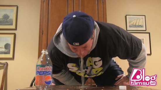 Tuy nhiên chỉ vài giây sau, cái kết đến quá đột ngột mới khiến anh chàng đắng ngắt cả tim gan dạ dày. Sau khi nôn thốc nôn tháo đào thải hết chỗ Pepsi hết “đát” từ 20 năm trước đó, anh chàng tím tái mặt mày vì cái tội chơi dại đầy cay đắng của mình.