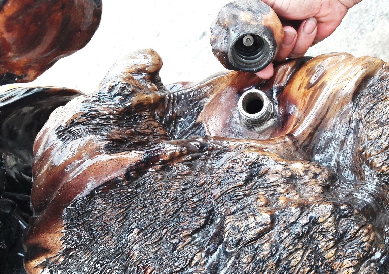 Để cho ra đời sản phẩm độc lạ này, ông Lê Quang Sơn đã phải cất công đi nhiều huyện phía Nam của tỉnh Lâm Đồng sưu tầm những gốc cây phù hợp với việc chế tạo vỏ xe.