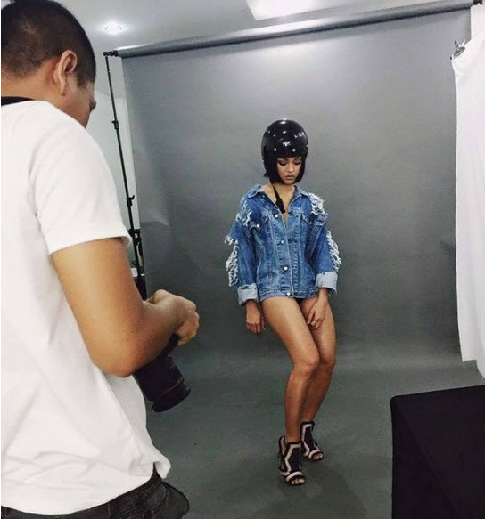Tuy chiếc áo denim che được những bộ phận nhạy cảm nhưng người xem vẫn nóng mắt trước phong cách mặc táo bạo của á quân The Face 2016.