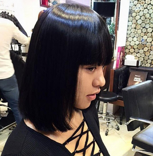 Vừa qua, Mai Ngô cũng gây ngạc nhiên cho fan khi bất ngờ đổi kiểu tóc. Mái tóc nâu bồng bềnh quyến rũ đã được thay thế bằng kiểu tóc mái bằng, nhuộm đen, thẳng tưng và cá tính.