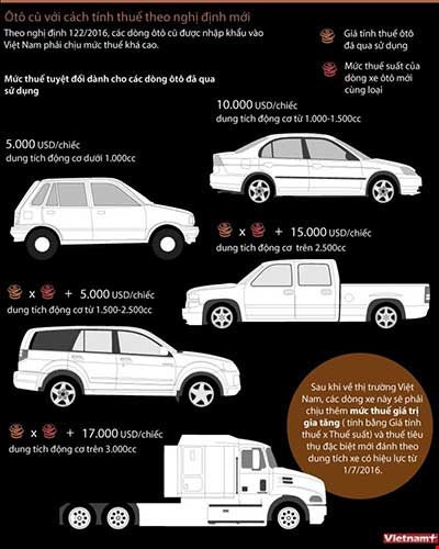 Đặc biệt việc điều chỉnh thuế tiêu thụ đặc biệt đối với xe có dung tích động cơ lớn (ô tô cũ nhập khẩu chủ yếu động cơ lớn) từ 1-7-2016 nên giá ô tô cũ càng cao hơn. Chưa hết, Nghị định 122/2016 mới ban hành càng đẩy giá ô tô cũ nhập khẩu lên cao hơn cả xe mới khiến khách hàng không chấp nhận.