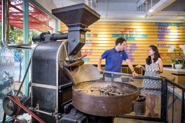 Jason Laurent - Giám đốc của Marou đang cực kỳ nhiệt tình khi giới thiệu về chiếc máy rang cacao cũng như về quán cà phê có 1-0-2 này