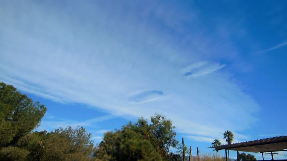 Trong một video mới đăng lên mạng cho thấy, những chiếc đĩa bay đang bay thoắt ẩn thoắt hiện ở trong mây và điều này làm dấy lên nghi ngờ về hành tung của người ngoài hành tinh. Vậy thực hư này là như thế nào? Video, quay vào thứ 2 đầu tuần, ghi lại cảnh tượng kì lạ trên bầu trời, khi những đám mây có hai lỗ hổng, dường như đang nhường chỗ cho một vật thể bay nào đó.
