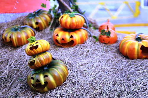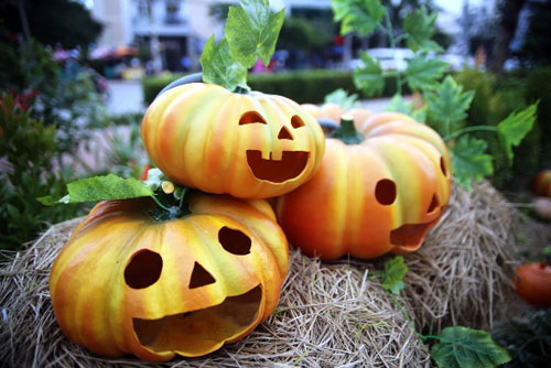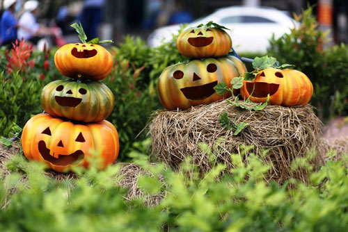 Những quả bí ngô được khoét rỗng ruột tạo thành hình khuôn mặt có mắt mũi miệng