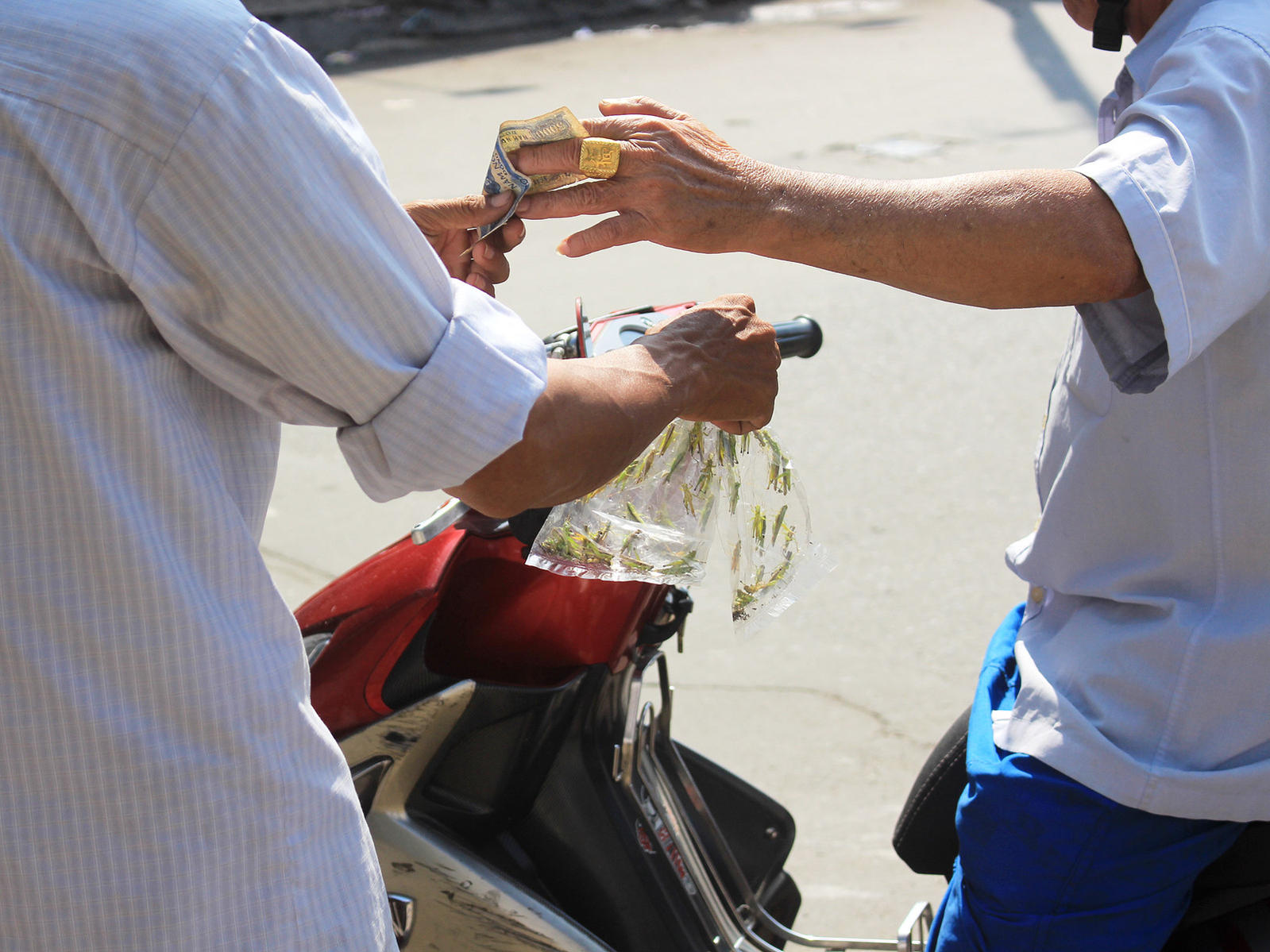 Ở tất cả những “quầy” hàng, người bán đều cột sẵn côn trùng vào bịch ni-lông, mỗi bịch khoảng từ 2.000 đến 5.000 đồng. Vì quá rẻ nên khách đến mua cũng không kì kèo, trả giá, chỉ hỏi loại cần rồi cứ vậy trả tiền.