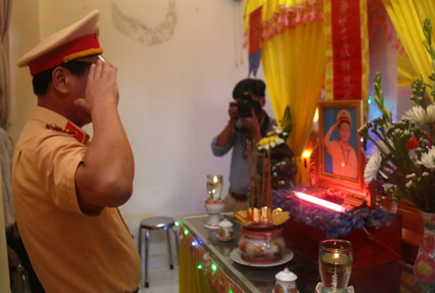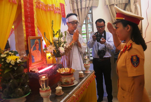 Sáng 4.11, đại tá Lê Ngọc, Trưởng phòng CSGT TP.Đà Nẵng cùng trung tá Phan Văn Thương, Phó phòng CSGT đã dẫn đầu đoàn cán bộ, chiến sĩ đến viếng hương và chia buồn với gia đình người “đồng đội” Đỗ Tuấn Dũng.