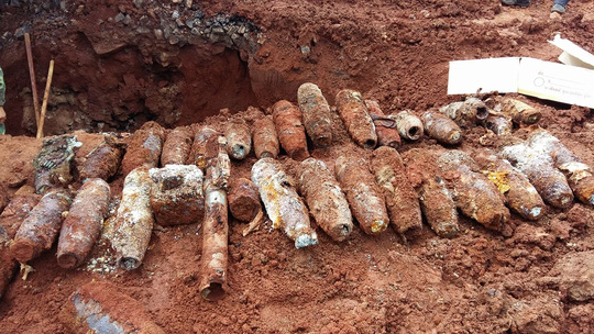Trong lúc thi công đường ống nước sạch, 1 công nhân đào trúng một số lượng lớn bom mìn còn sót lại từ chiến tranh.