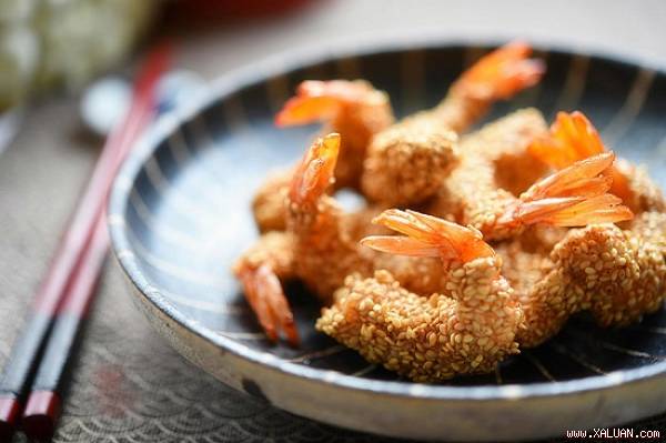 - Sau đó bạn lăn vào bát vừng đã rang chín cho lớp áo vừng phủ kín tôm.