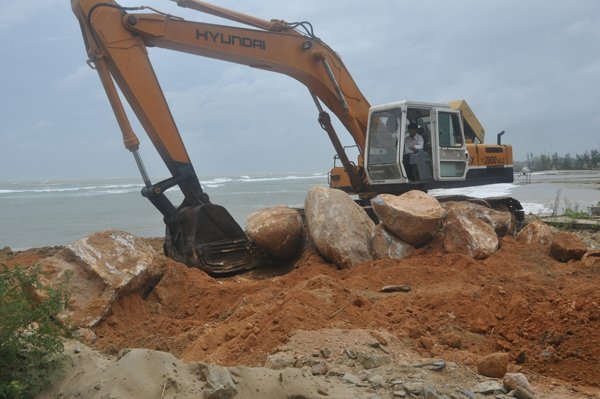 Hàng năm, vào mùa mưa bão, khu vực Cửa Đại, Hội An giống như một bãi chiến trường. Bãi biển tuyệt đẹp hút hồn du khách giờ đây là những bao cát xây tường chắn sóng, cọc tre kè chắn, cây cối bị sóng đánh bật gốc nằm ngổn ngang.