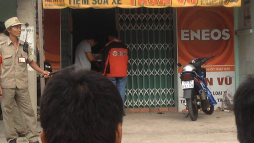Chiều tối 6.12, Công an quận Thủ Đức, TP.HCM mới hoàn thành khám nghiệm hiện trường điều tra nguyên nhân cái chết của anh Vũ (26 tuổi, chủ tiệm sửa xe trên địa bàn).