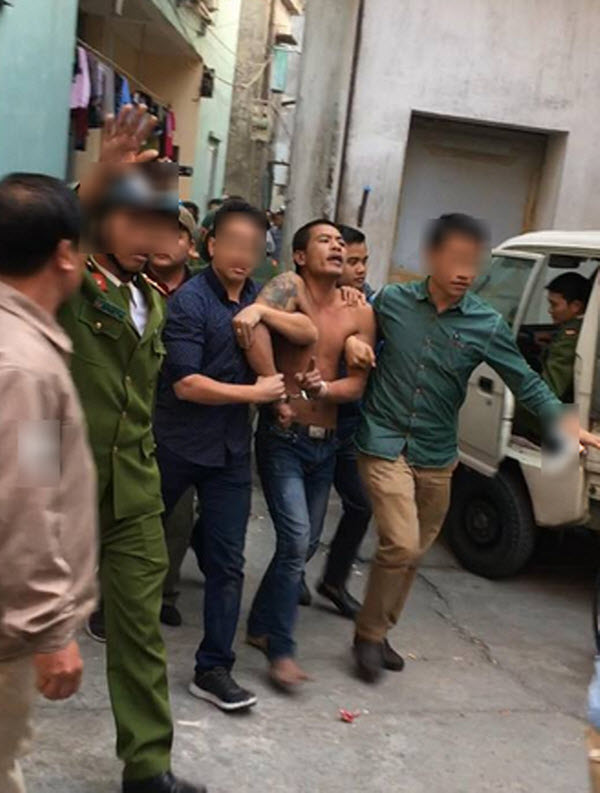 Clip cho thấy nhiều công an cùng lực lượng chức năng bắt và áp giải thanh niên cởi trần và xăm trổ ở cánh tay ra xe để đưa về trụ sở công an. Trên đường đi, anh ta la hét: “Quay hết đi, quay mà post lên mạng”.