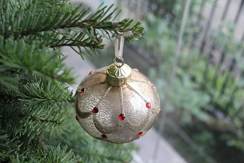 Những quả cầu thủy tinh lung linh được trang trí trên cây thông thật