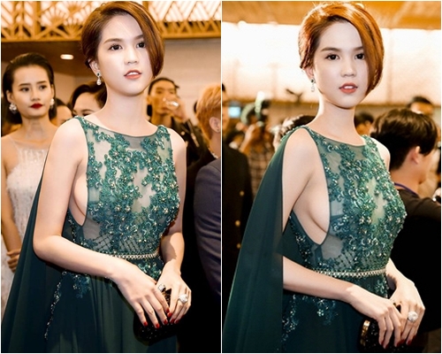 Trà Ngọc Hằng khoe trọn đôi chân thon dài, vóc dáng gợi cảm với đầm xẻ cao, cắt đôi vạt trước. Tuy nhiên, người đẹp nhận được không ít chỉ trích.