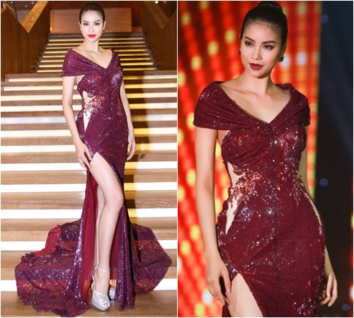 Hoa hậu Hoàn vũ 2015 Phạm Hương đầy cuốn hút với thiết kế xẻ cao.