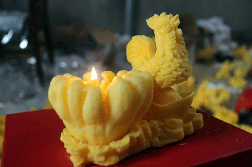 Sản phẩm gà vàng phật thủ bằng nến.