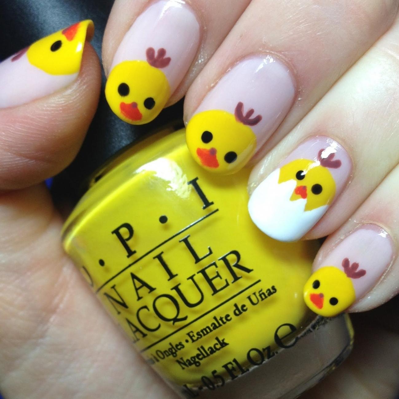 Các nàng có thể chấm chấm những gương mặt bầu bĩnh của một chú gà con lên móng tay mình. (Ảnh: Pinterest)