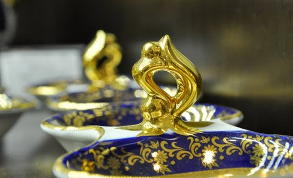 Bộ bàn ăn dát vàng lấp lánh