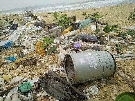 Theo ghi nhận vào chiều 11-2, gần chục cây số dọc bãi biển từ xã Tam Quang đến xã Tam Nghĩa (huyện Núi Thành) xuất hiện rất nhiều những mảng nhựa đường (dầu hắc ín) từ phía bãi tắm vào bên trong bờ gần 200 m. Cùng với đó là cả ngàn vỏ chai, bao bì, bao thuốc lá có nhãn mác bằng chữ nước ngoài cũng bị sóng đánh tấp vào bờ gây ô nhiễm.