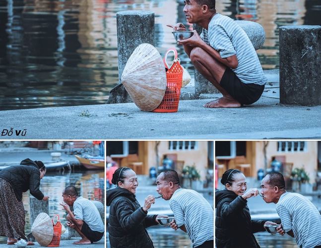 Anh Đỗ Vũ, tác giả loạt ảnh người mẹ già bón cơm cho con trai, kể với chúng tôi: "Tôi nghe người dân bảo mẹ anh Tùng tên là Quí, bán hoa đăng ở sông Hoài từ ngày trẻ. Con bà, anh Tùng, mắc bệnh tâm thần. Anh hay đi quanh phố chỉ mặc quần đùi và áo mỏng tang quanh năm. Ảnh không chọc phá ai. Hoàn cảnh gia đình đó rất tội...".