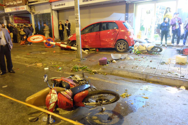 Vụ tai nạn nghiêm trọng xảy ra ngay tại thủ đô Hà Nội. Chiếc ô tô đã đâm liên hoàn nhiều xe máy đang đỗ bên đường. Sau khi chiếc ô tô dừng lại được thì đã có nhiều người bị thương.