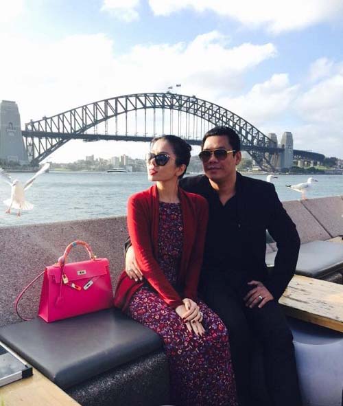Lệ Quyên cùng chồng trong một chuyến đi du lịch nước ngoài