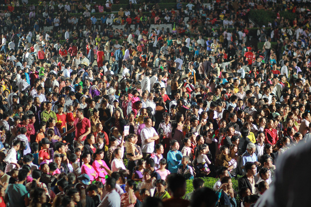 Cả khuôn viên Khu di tích không còn một chỗ trống. Dòng người muốn di chuyển phải nhúc nhích từng bước
