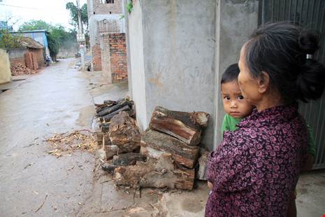 Thân cây được người dân cưa ra làm củi, chất đống theo ven đường, trước cửa nhà.