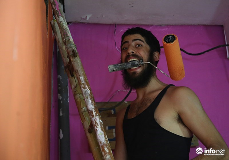 Scott Matt đang sơn lại ngõ 50 Hàng Bạc.